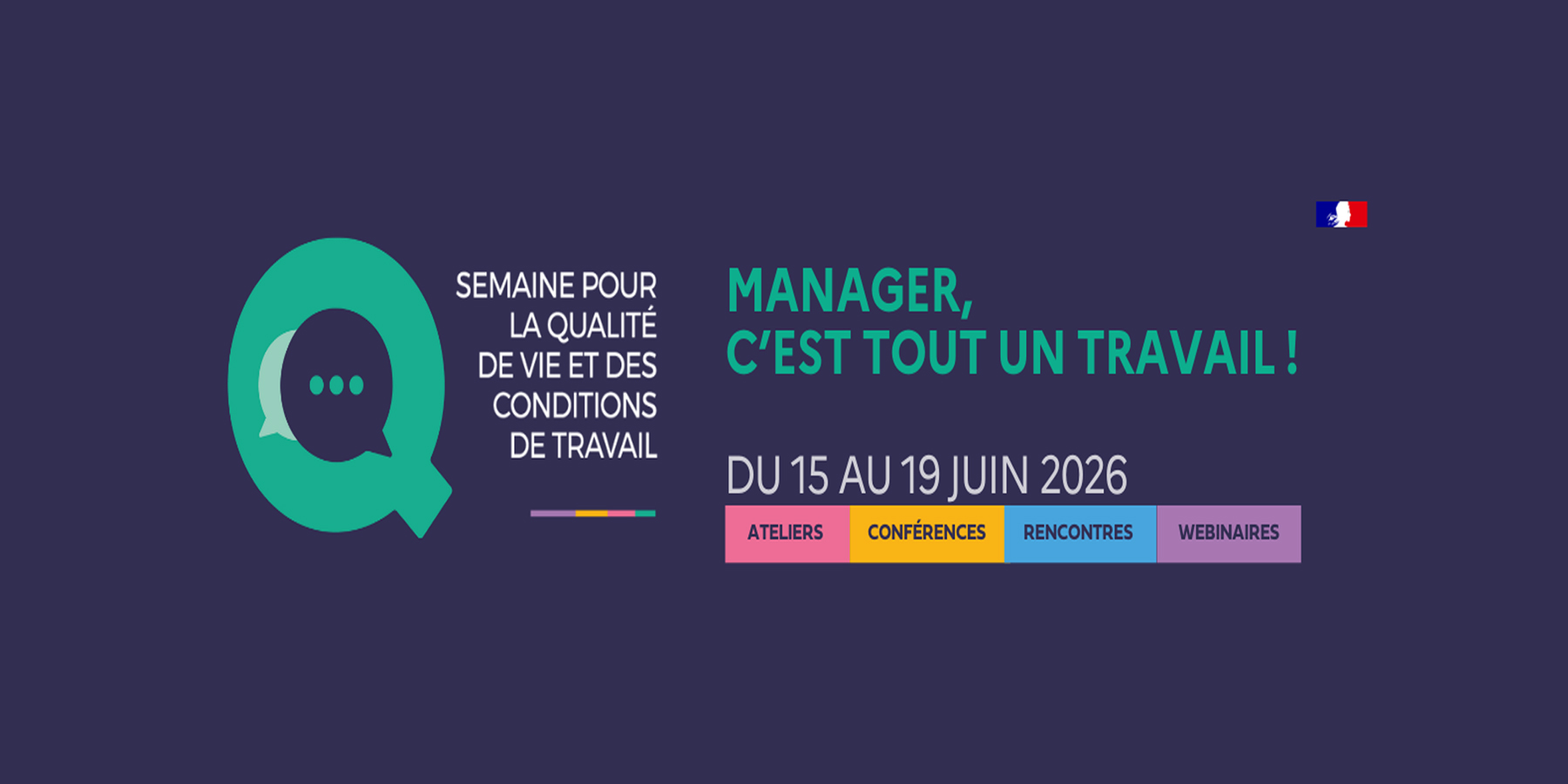 La Semaine pour la QVCT se déroulera du 15 au 19 juin 2026. Organisée dans toute la France, elle explorera les liens entre qualité de vie et des conditions de travail et management.