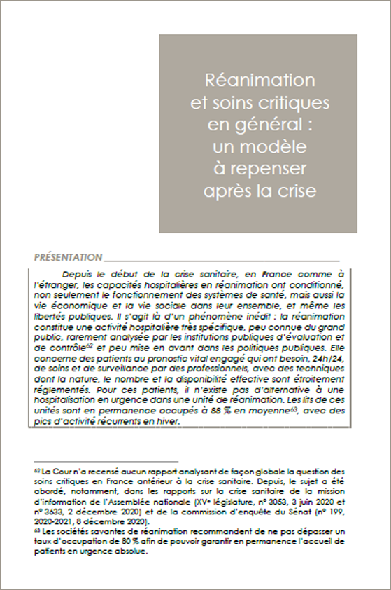 Lien direct : https://www.ccomptes.fr/sites/default/files/2021-03/20210318-04-TomeI-reanimation-et-soins-critiques-en-general.pdf